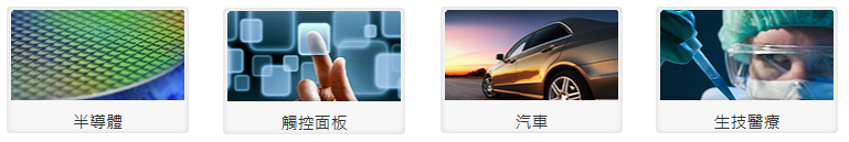 - 封裝半導(dǎo)體、觸控面板、LCD 光電面板、手機、NOBOOK電腦、電子業(yè)、PC板、光電、汽車零件業(yè)、醫(yī)療器材...等產(chǎn)品。
